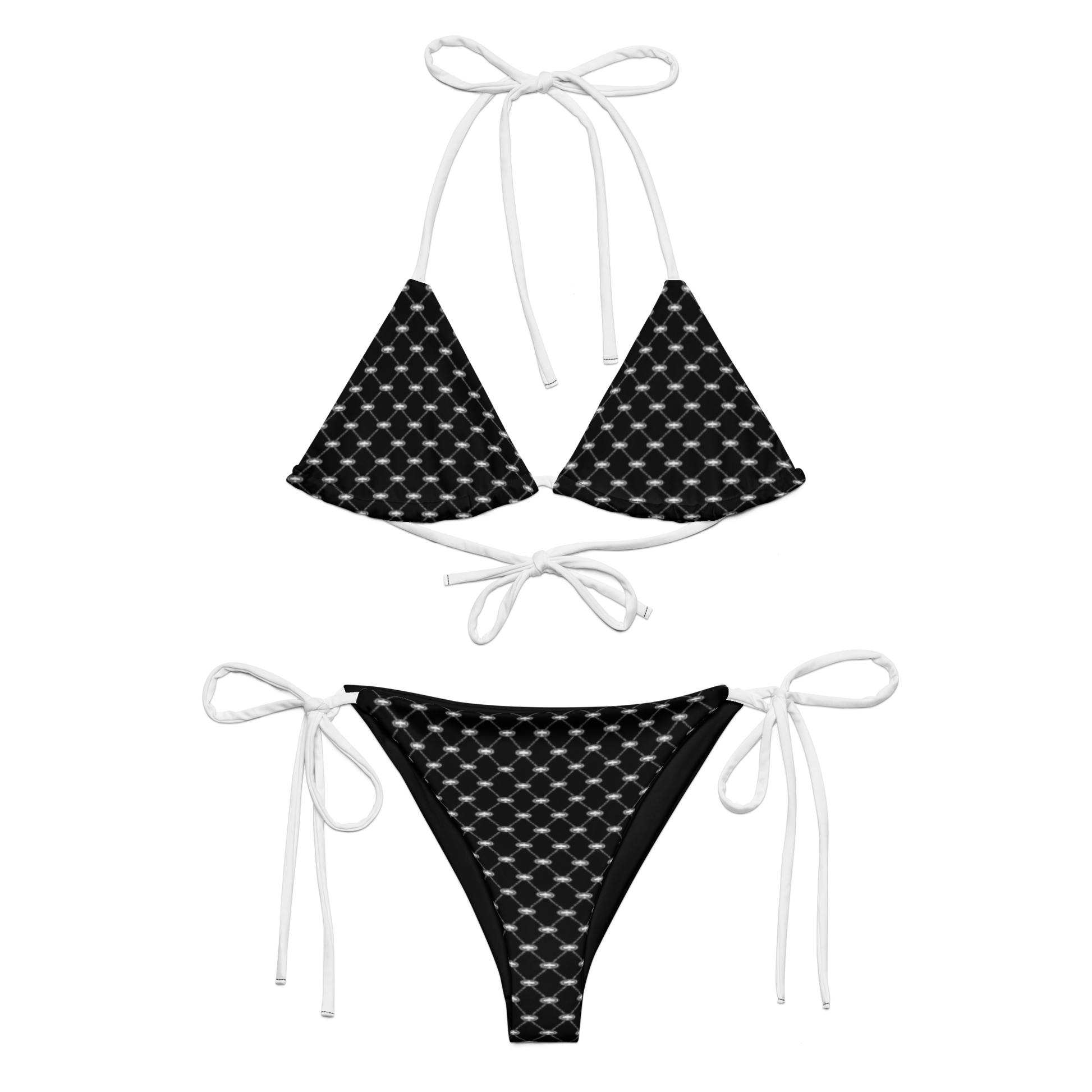 • To make your All-Over Print Recycled String Bikini last longer, thoroughly rinse it off after each use and get rid of any chlorine/salt residue.
